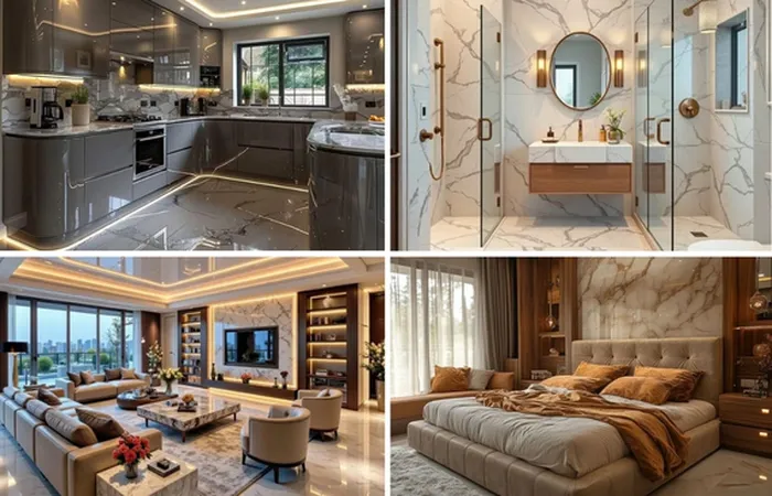 - Premium/Luxury Package (₹2,500+ per sq. ft.): Involves high-end customization, imported materials, smart home integration, and bespoke furniture.